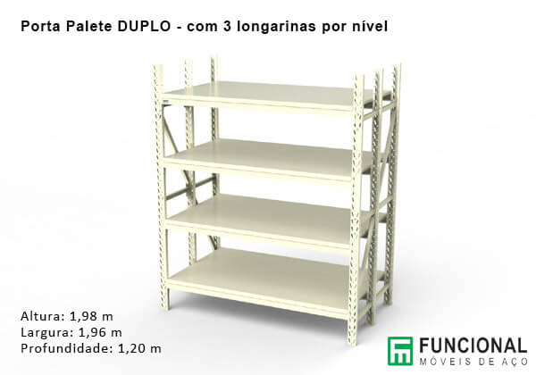 Porta palete duplo com 4 níveis + prateleiras de aço reforçadas